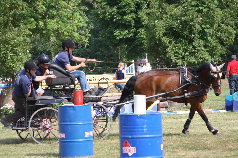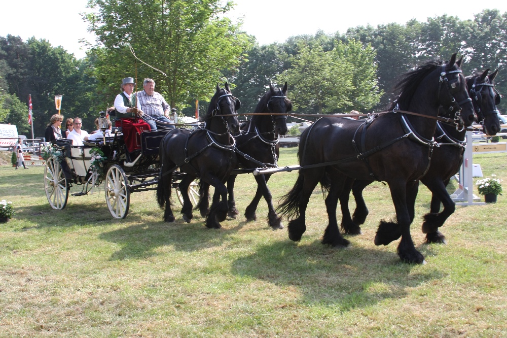 Als Weltmeister der Kaltblutgespanne zeigte am Nachmittag Andreas Wintgens aus dem benachbarten Scherpenseel mit seinem imposanten Sechsspänner zu welchen Leistungen seine Gespanne fähig sind.