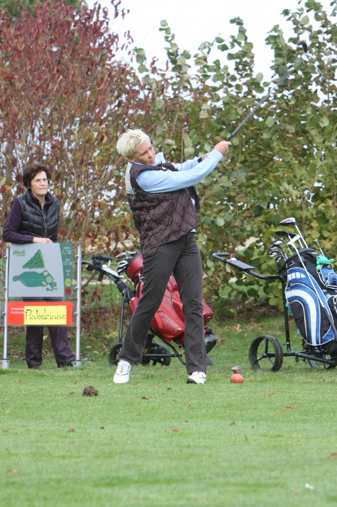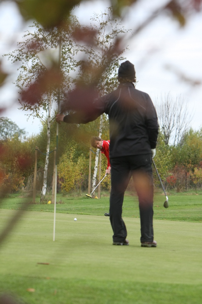 Bei herbstlichen Temperaturen gingen 46 Spieler/innen am Vormittag auf die 9-Loch-Anlage am Geilenkirchener Stadtrand. Zweimal musste der Platz bewältigt werden, bevor die Sieger feststanden. In drei Kategorien wurden Preise und Pokale vergeben. Leider gab es bei den Jugendlichen in diesem Jahr nur einen Teilnehmer. Somit konnte Jonas Hähn zwangsläufig ohne Konkurrenz die Jugendwertung für sich entscheiden. Wesentlich spannender ging es bei en Damen zu. Katja Honervogt konnte sich dabei knapp gegenüber Eva Lüttgens durchsetzen und den Wanderpokal bis zum nächsten Jahr in die eigene Vitrine stellen. Platz drei belegte Martina Postma vor Jutta Spenner und Ilona Göttgens. Den Wanderpokal bei den Herren entführte Udo Schröder, der für den GC Wildenrath spielt. Auf den Plätzen rangieren Hans-Dieter Dyballa, Henk Zondag, Mario Pantel und Hubert Gerhards, die alle für den GP Loherhof aktiv sind. Georg Reuters sowie Martina und Rick Postma freuten sich über den immer größer werdenden Zuspruch für dieses Turnier. „Ich hoffe, dass wir euch im nächsten Jahr zur Neuauflage des Uro-Cup alle wiedersehen“, so Postma nach der Pokalübergabe an die Sieger.