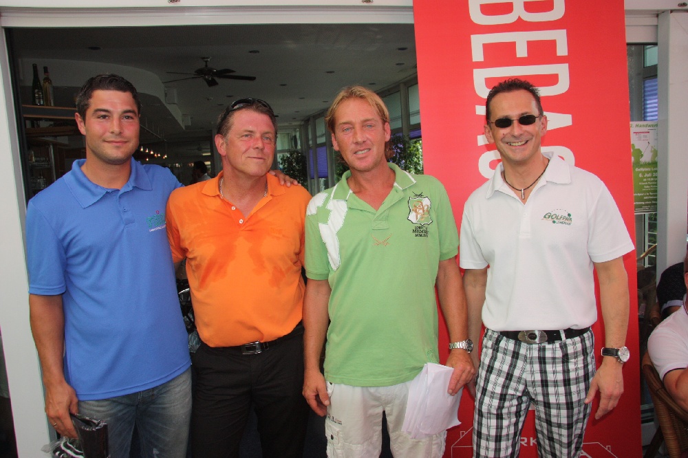 Geilenkirchen. Bestes Golfer-Wetter bildete den Rahmen für den 2. Handwerker-Cup auf der Golfanlage am Loherhof. Michael Göttgens, Firma „e-line“ und Marcel Slomka, „Bedachungen Slomka und Lürken“, haben dieses Turnier im letzten Jahr in die Golfsaison eingebaut, um mit dem Erlös eine caritative Einrichtung zu unterstützen. Ein großes Starterfeld ging am Samstag des ersten Juli-Wochenende auf den 9-Loch-Parcours des Golfpark. Um 11 Uhr starteten die ersten Spieler und gegen 16 Uhr waren dann die letzten Golfer im Restaurant um an der Siegerehrung teilzunehmen. Aufgrund der hohen Teilnehmerzahl wurde das Feld in drei Platzierungsklassen aufgeteilt.