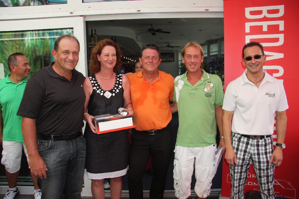 Martina Postma konnte sich in der Brutto- und Netto-Klasse A durchsetzen. Dahinter platzierten sich Heiko Toepke, Petra Krückel und Dennis Meessen. In der Klasse B siegte „Gastgeber“ Marcel Slomka, von Helmut Hannes und Bernd Mohren. In einer weiteren Klasse mit höherem Handicap gewann Ergün Yildirim vor Uwe Asten, Heinz Schütt und Klaus-Josef Gülpen. Nach den Siegerehrungen folgte einer der wichtigsten Abschnitte des Tages. Eine Tombola, deren Erlös kommplett in den Spendenbetrag ging. Hauptgewinn war ein 42 Zoll Fernseher. Dazu gab es eine Vielzahl von weiteren hochwertigen Gewinnen, angefangen von einem Fahrrad bis hin zu Handwerksgeräten. Göttgens und Slomka ermöglichten in der Mittagszeit einigen Gästen einen Schnupperkurs auf der Golfanlage. Ob daraus ein kommender Turniersieger entsteht bleibt abzuwarten.