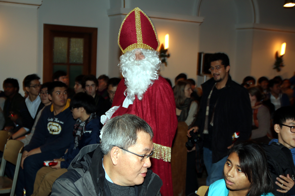 Geilenkirchen. Nachdem die Familie Davids den Campus der FH Aachen in Geilenkirchen um eine große Anzahl Wohnplätze erweitert hat, sind mittlerweile fast 300 Studenten aus vielen Ländern der Erde am Loherhof. Dort treffen nicht nur viele verschiedene Sprachen aufeinander, sondern auch die kulturellen Vorgaben sind entsprechend unterschiedlich. Zum Nikolausfest veranstaltet das Freshman-Institut, dieses ist für die Hochschulvorbereitung der Studierenden zuständig, ein großes Fest. Viele der Studenten kommen aus Südostasien und hatten bis zu dieser Feier keine Vorstellung, was ein Nikolaus ist. Groß waren die Augen, als dann der Nikolaus in den Saal trat. Sogleich zückten viele der rund 400 Gäste ihre Handys, um ein Foto von dem rot-weiss gekleideten Mann mit Bart zu machen. In einem Grußwort erläuterte der Leiter des Freshman-Institut der FH Aachen, Hermann-Josef Buchkremer, den Studenten das Weihnachtsfest und hieß die Studenten willkommen. Er wünschte ihnen einen guten Start in das Hochschulleben und vor allem Erfolg.