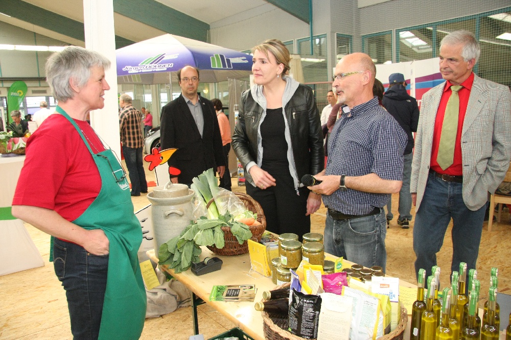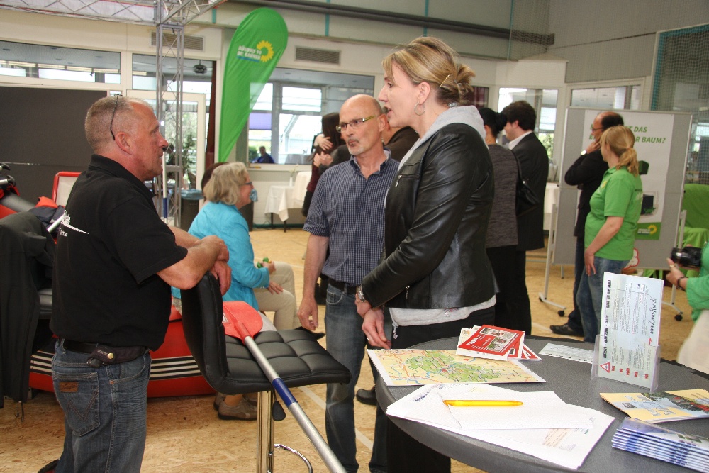 Geilenkirchen. Im Vorfeld stand der 7. Grünen Unwelttag unter keinem guten Stern. Die Planungen begannen bereits im letzten Jahr und waren terminlich mit anderen Veranstaltungen abgesprochen. Doch dann verlegte der Aktionskreis die Autoschau 2014 auf den gleichen Termin wie Jürgen Benden von BÜNDNIS 90/DIE GRÜNEN mit dem Umwelttag. „Als ich das hörte, dachte ich nur, das wird wohl das letzte Mal gewesen sein. Doch es kam jetzt anders als erwartet. Im Verlauf des Tages ist mir ein Stein vom Herzen gefallen. Nicht nur die Tatsache, dass der Zuspruch sehr gut war, waren von den 57 Ausstellern alle mit dem diesjährigen Umwelttag zufrieden“, so Benden. Am Sonntag kamen rund 2000 Besucher in den Sportpark Loherhof und bekamen dort Informationen rund um Gesundheit, Ernährung, Freizeitgestaltung und Ernergiegewinnung. Wie schon vor zwei Jahren, damals war der Bundestagsabgeordnete Özdemir zu Gast, konnte Jürgen Benden auch diesmal wieder eine bundespolitische Kraft von BÜNDNIS 90/DIE GRÜNEN begrüßen. Mit Simone Peter schaute die Vorsitzende der Partei im Sportpark vorbei. In einem Rundgang durch die Halle konnte sie sich über das große Angebot dieser Messe informieren und war begeistert, was dort auf die Beine gestellt wurde. „Dieser Umwelttag lebt vom Fachpublikum. Und dieses war auch diesmal wieder da. Es ist ganz wichtig, wenn Gespräche in der richtigen Atmosphäre geführt werden können. Das ist im Sportpark der Fall. Ich gehe davon aus, dass wir auch in zwei Jahren wieder einen Umwelttag veranstalten werden“, so ein vorsichtiger Ausblick von Jürgen Benden.