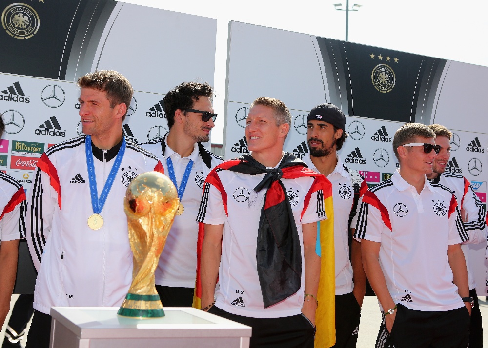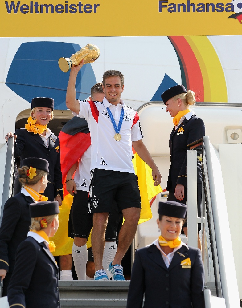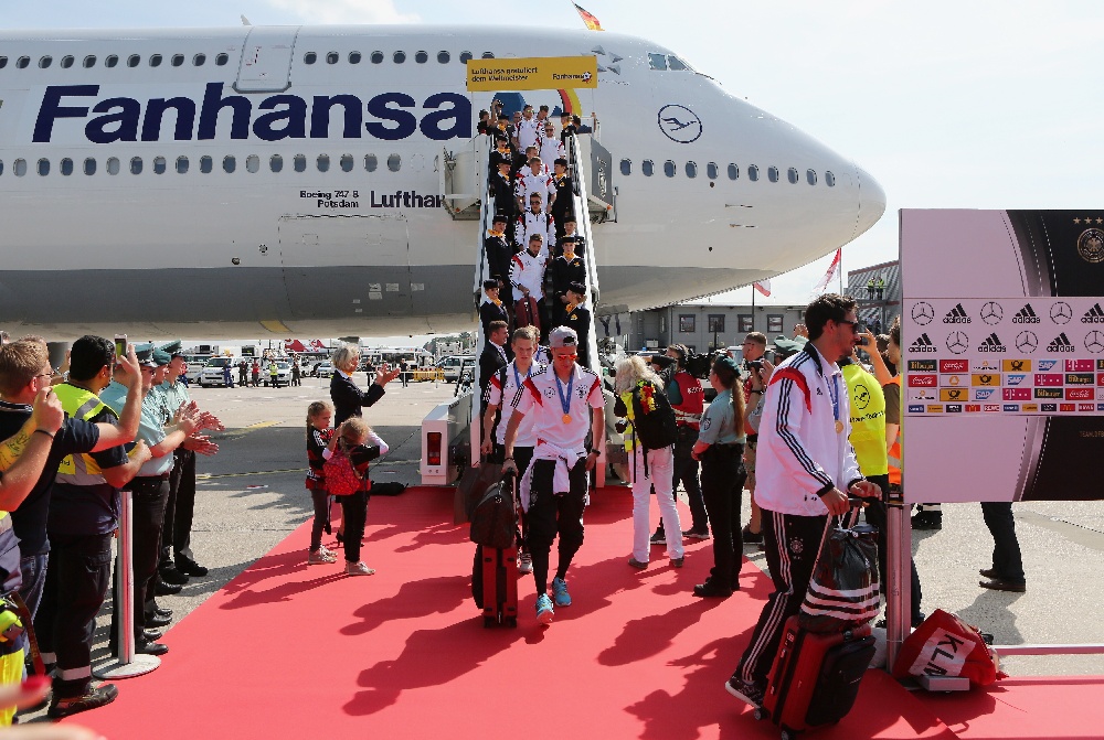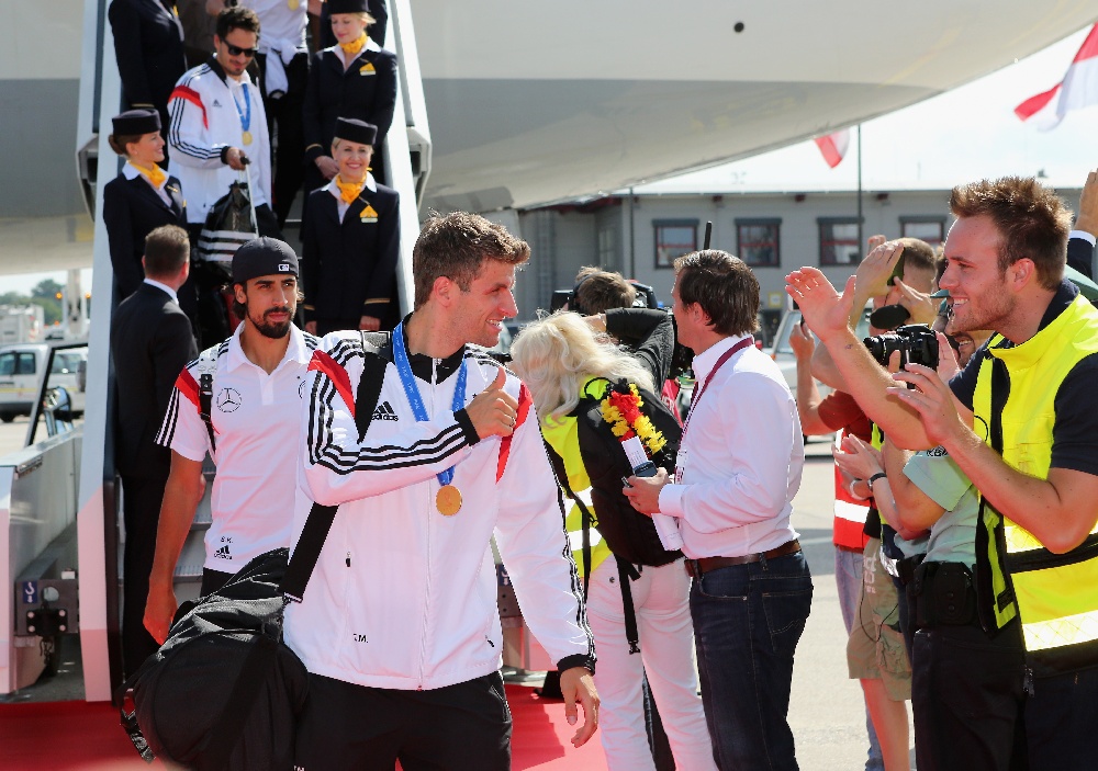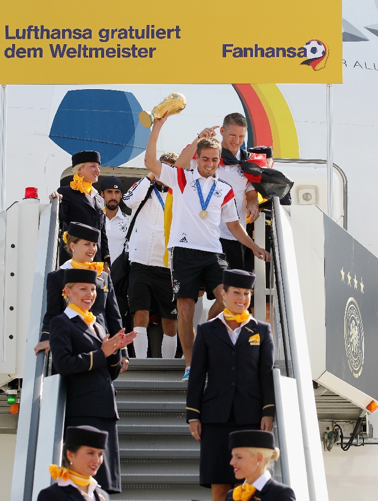 Berlin. Der Weltmeister ist auf deutschem Boden gelandet. Berichte haben wir auf unserer Seite nicht gebracht, da wir die Aktualität nicht wahren konnten. Trotzdem möchten wir hier kurz die Bilder von der Ankunft zeigen. Diese wurden uns vom DFB-Bilder-Pool, Agentur Getty Images, zur Verfügung gestellt.