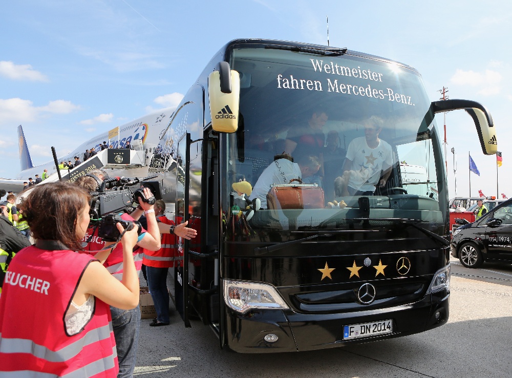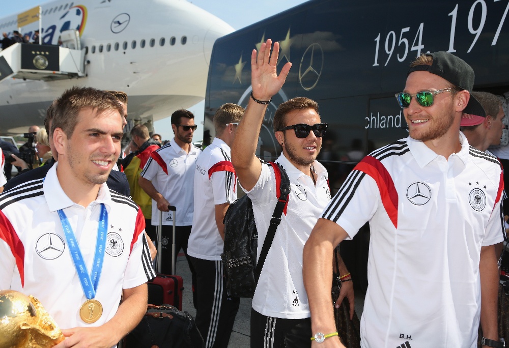 Berlin. Der Weltmeister ist auf deutschem Boden gelandet. Berichte haben wir auf unserer Seite nicht gebracht, da wir die Aktualität nicht wahren konnten. Trotzdem möchten wir hier kurz die Bilder von der Ankunft zeigen. Diese wurden uns vom DFB-Bilder-Pool, Agentur Getty Images, zur Verfügung gestellt.