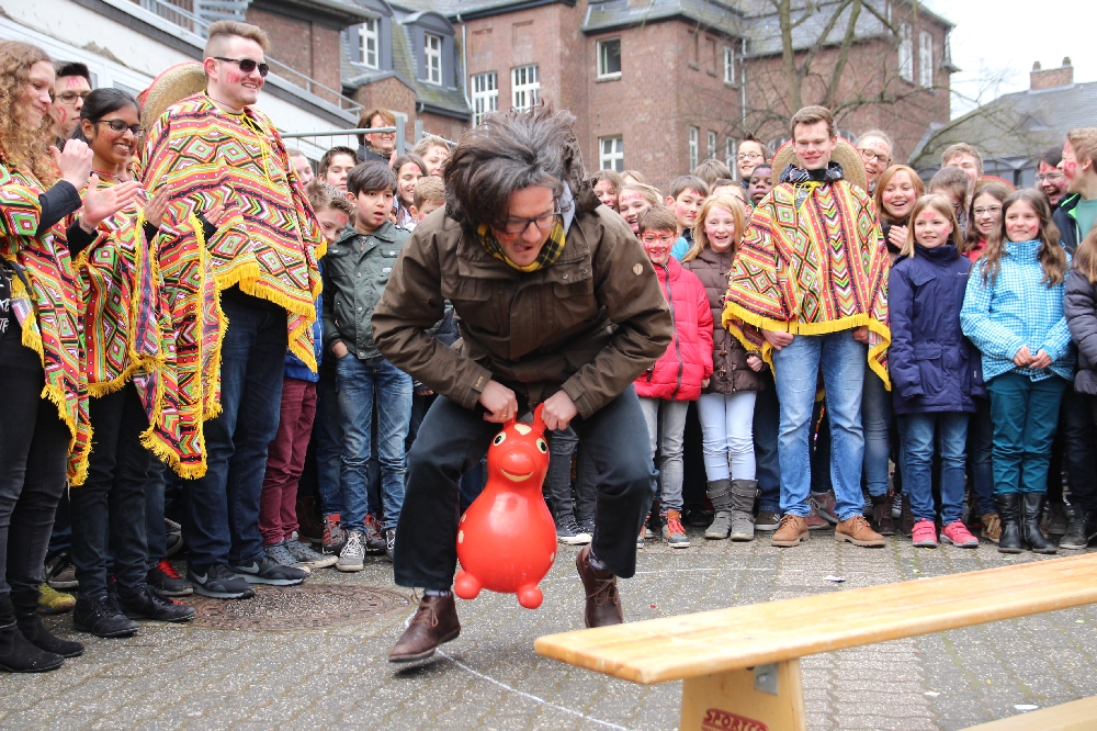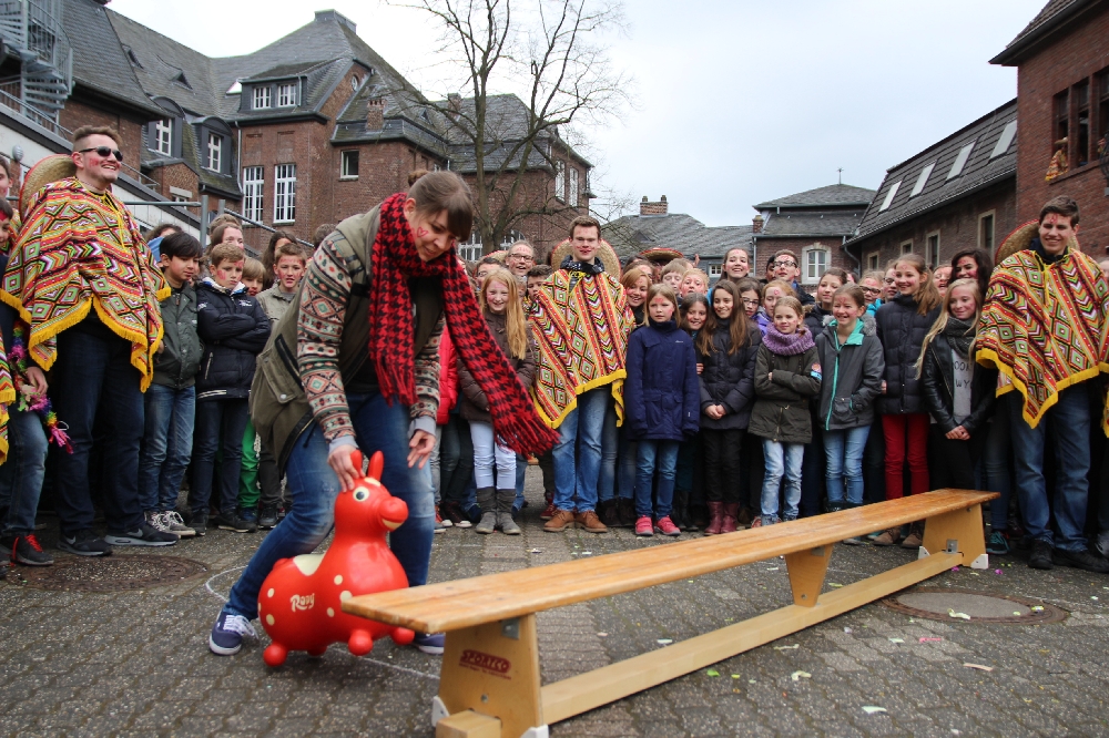 Geilenkirchen. Der letzte Schultag vor den Osterferien ist jedes Jahr der Abschluss für alle, die in diesem Jahr das Abitur ablegen. Der Abi-Streich steht dann auf dem Programm der Schüler des St.Ursula Gymnasium in Geilenkirchen. Klar zu erkennen sind die Absolventen, die den letzten Unterrichtstag entsprechend ausklingen lassen. Dass die Lehrer da nicht ungeschoren davon kommen, dafür sorgten – wie jedes Jahr – die rund 180 Abiturienten. Dabei blieb der Abi-Streich in Geilenkirchen jederzeit im „Rahmen“. Wir haben eine kleine Bilderauswahl über das, was dort geschehen ist. Die Abiturienten haben nach den Osterferien nur noch wenig Vorbereitungszeit auf die Abschlussklausuren. Mit der zentralen Prüfung im Fach Deutsch beginnen die Abiturprüfung am 14. April.