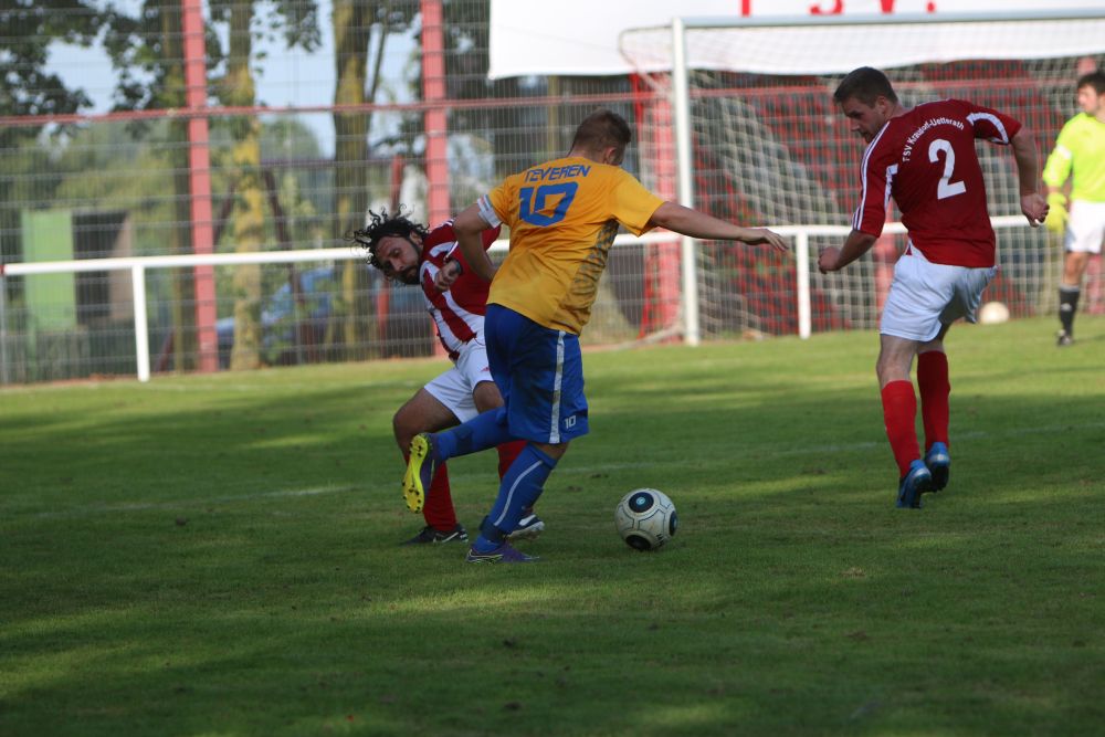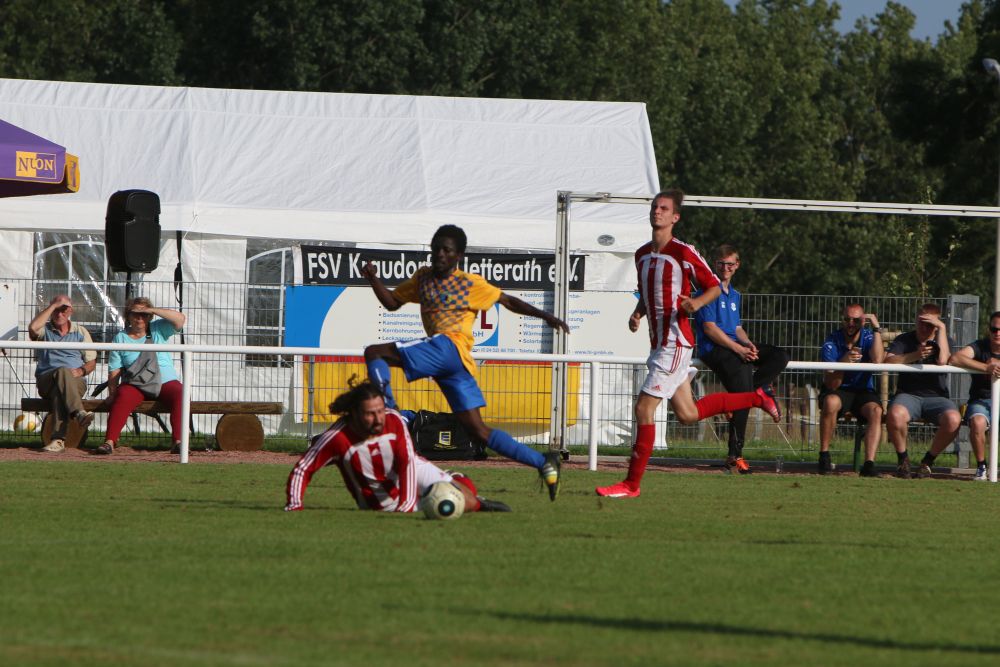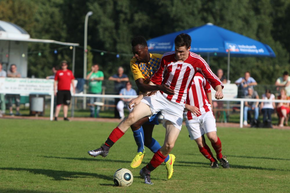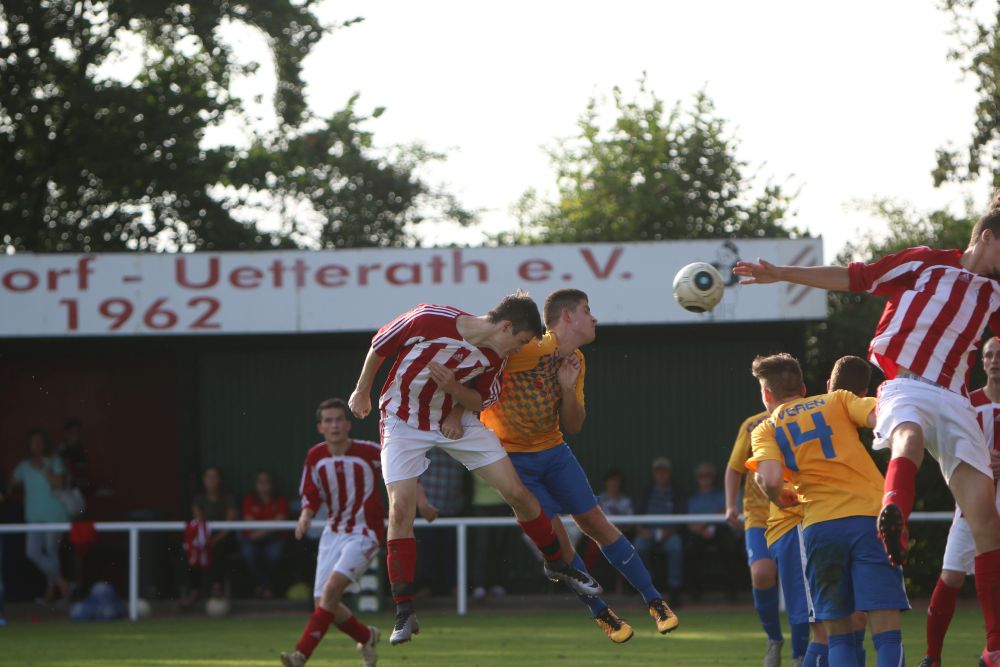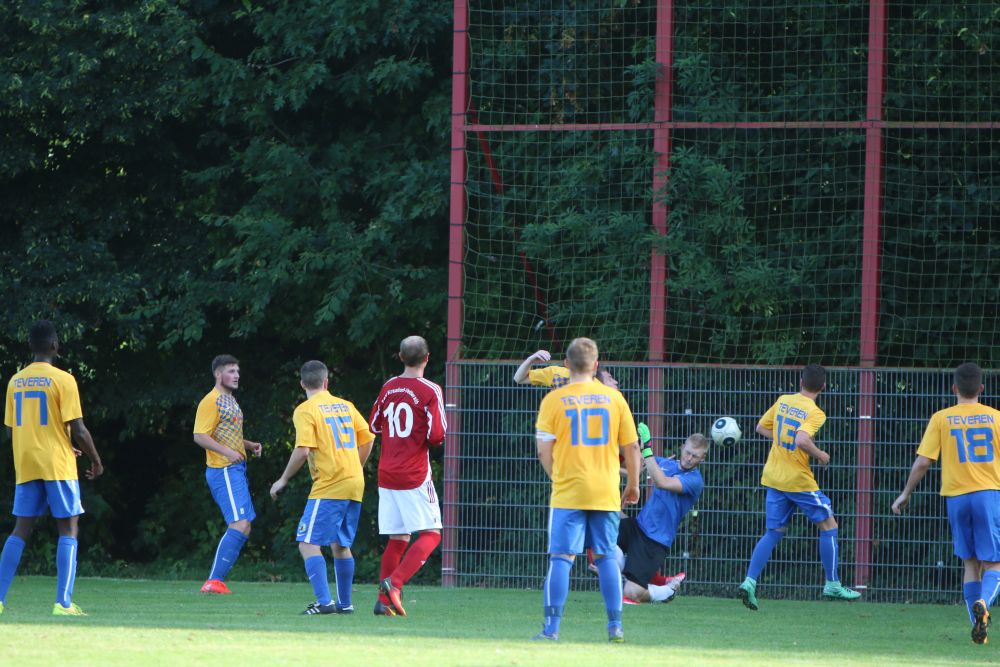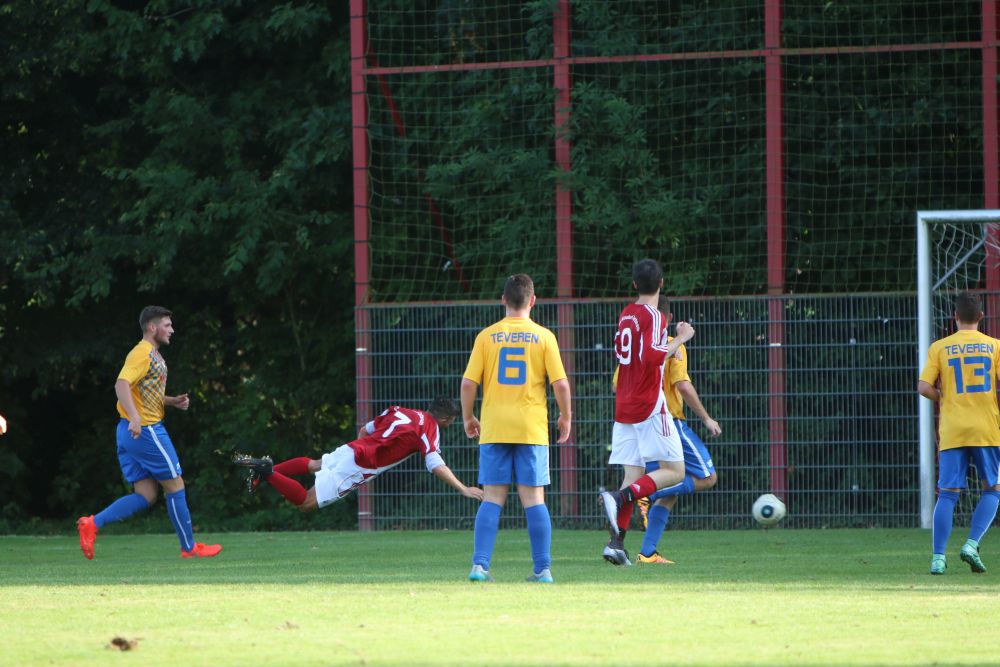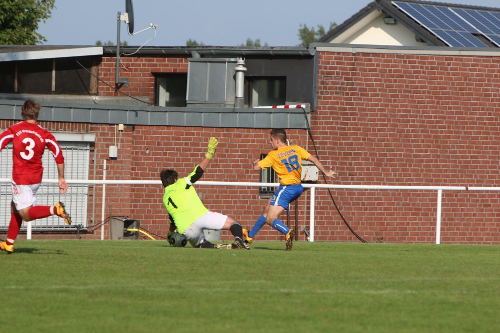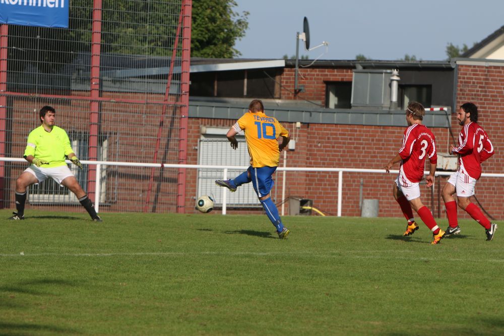 Geilenkirchen-Kraudorf. Der diesjährige Gastgeber der Geilenkirchener Fußball-Stadtmeisterschaft, der FSV Kraudorf-Uetterath, verpasste nur knapp eine Sensation. Als klassentiefster Mitstreiter um den Stadttitel unterlagen sie Germania Teveren mit 3:4. In einem eher schwachen Spiel gab es zwei komplett unterschiedliche Halbzeiten. Die Germania kam besser ins Spiel und ging nach einem Abwehrfehler der Gastgeber mit 1: 0 in Führung. Als kurz danach das 2: 0 und sogar das 3:0 fiel, schien die Partie schon vor der Halbzeit entschieden. Doch der FSV wachte langsam auf und bekam auch Torchancen. In den letzten acht Minuten vor dem Seitenwechsel kam der C-Ligist nach Standardsituationen noch auf 2:3 heran. Zu Beginn der zweiten Halbzeit war Kraudorf den Germanen gleichwertig. Doch wiederum eine Unaufmerksamkeit in der FSV-Abwehr bescherte den Teveranern das 4:2. Einen fulminaten Endspurt legte dann der FSV hin. Zehn Minuten vor dem Ende gelang der Anschlusstreffer durch einen fragwürdigen Strafstoss. In den letzten Minuten der Partie spielte dann nur noch Kraudorf. Doch auch beste Einschussmöglichkeiten blieben ungenutzt. Für den FSV Kraudorf-Uetterath wäre ein Sieg im Endspiel der Stadtmeisterschaft der richtige Rahmen für die Vereinsfeierlichkeiten am Abend gewesen. Auch wenn es nicht sein sollte, scheint der FSV im Bestreben die C-Liga nach der kommenden Saison verlassen zu können, auf dem richtigen Weg zu sein.