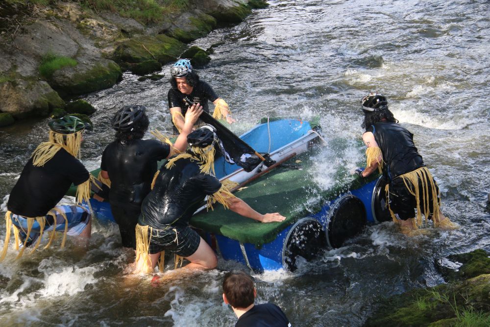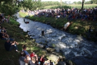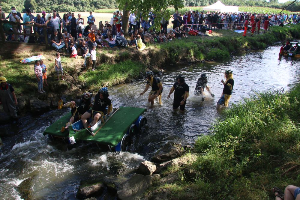 Geilenkirchen-Würm. Wenn es keine Parkplätze rund um den Geilenkirchener Ort Würm mehr gibt, ist dies ein Zeichen dafür, dass wieder einmal das bekannte und beliebte Badewannenrennen stattfindet. So geschehen am Samstag. Wieder einmal weckte die „Wurmstrecke“ das Interesse einiger tausend Besucher. In diesem Jahr stimmte auch wieder das Wetter, nachdem im vergangenen Jahr eine Menge Wasser von oben kam. Mit Temperaturen über 20 Grad und teilweise Sonnenschwar das diesjährig „Rennen“ wieder ein Highlight. Die Freizeitkapitäne mussten mit ihren selbstgebauten „Badewannnen“ nicht nur die Wassermassen von den Zuschauern über sich ergehen lassen sondern auch noch kurz vor dem Ziel eine „Stromschnelle“. Dabei gingen einige der „Boote“ zu Bruch. Die rund 100 Meter lange Weg bis ins Ziel mussten die Teilnehmer dann zu Fuß bewältigen.