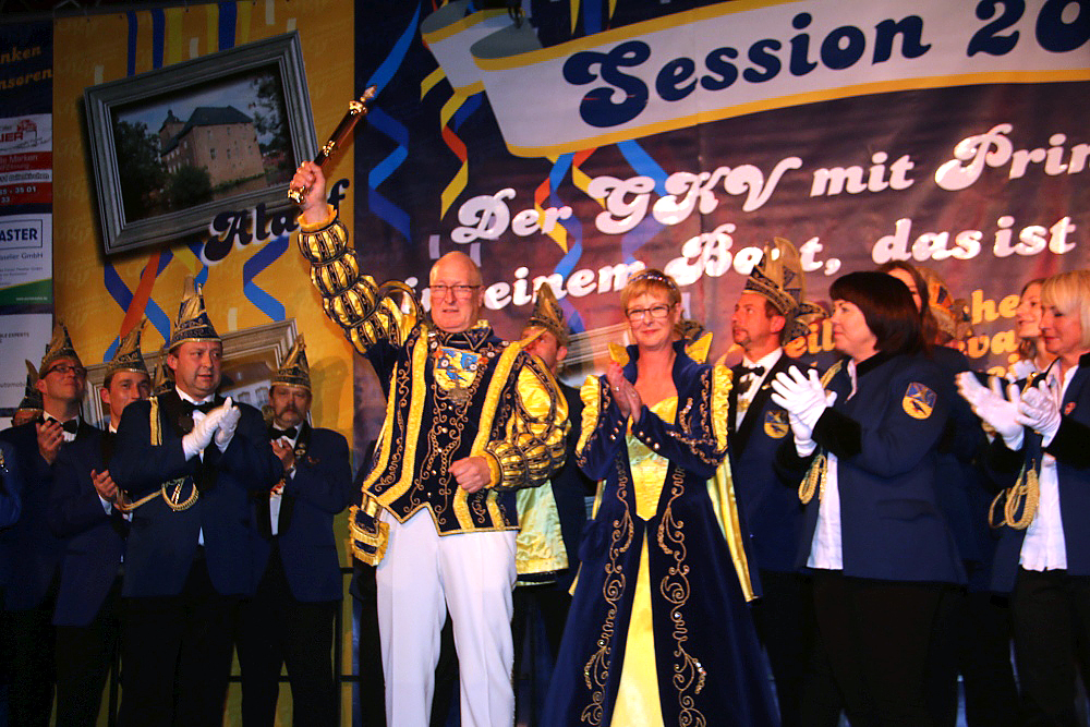 Geilenkirchen. Den offiziellen Sessionsauftakt feierten am Freitag die Jecken des Geilenkirchener Karnevalverein im Eventcenter „Luna Lounge“ in Geilenkirchen. Ein voller Saal, gute Stimmung und hochmotivierte Karnevalisten zeichneten sich dafür verantwortlich, dass die Prinzenproklamationen an diesem Abend den richtigen Rahmen hatten. GKV-Präsident Marko Banzet, führte durch das Programm. Als erstes wurde das Kinderprinzenpaar mit Maurice I. & Leonie I. proklamiert. Danach zog das neue Prinzenpaar Bert I. und Petra I. mit seinen Adjutanten zur Proklamation in die Luna Lounge ein. Der Präsident lies es sich nicht nehmen, die Laudatio über seinen 1. Vorsitzenden und jetzigen Prinzen im Verein, selber zu halten. Dabei kamen einige „Jugendsünden“ zum Vorschein. Doch wie es sich im Karneval gehört, wird darüber kräftig gelacht. So auch an diesem Abend. Nachdem Marko Banzet den Prinzenorden und das Zepter übergeben hatte, folgten zahlreich Ordenübergaben. Zum neuen Senator des GKV wurde an diesem Abend Henning Cwik ernannt.