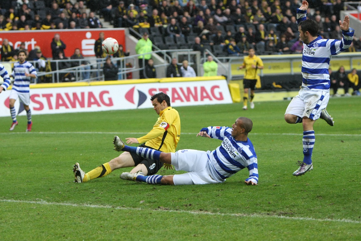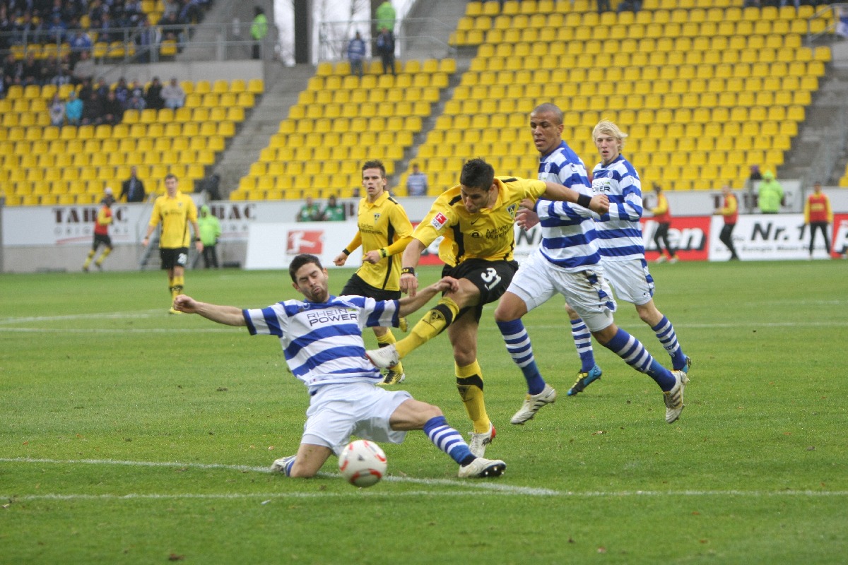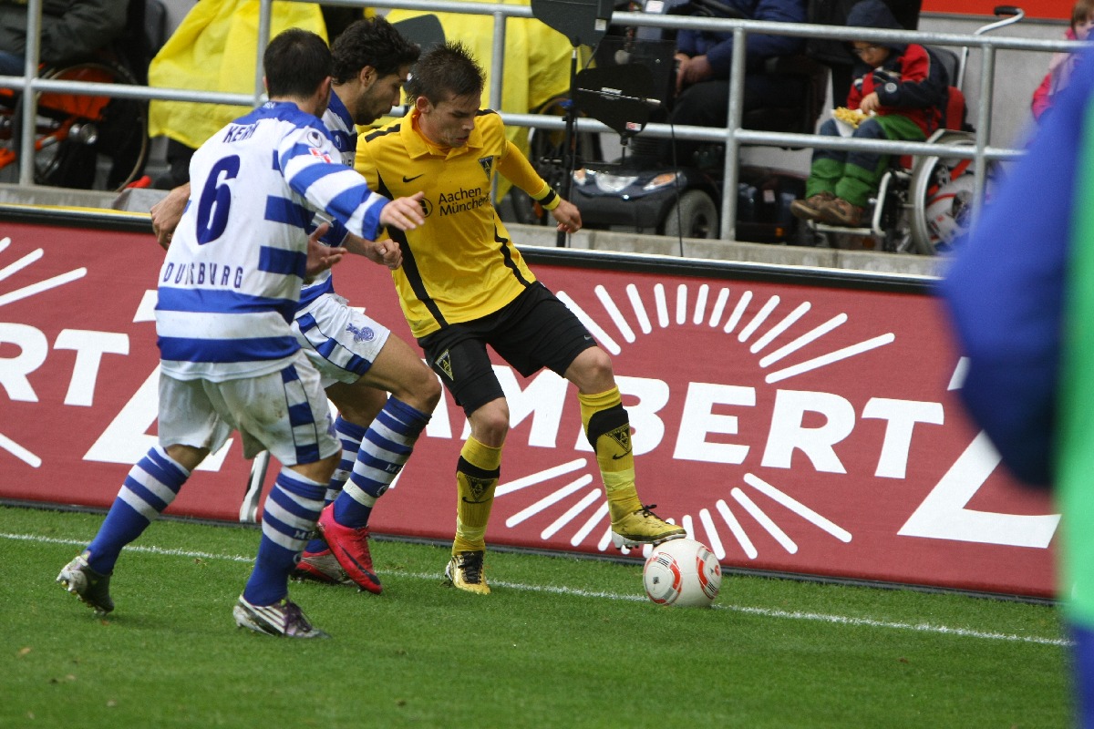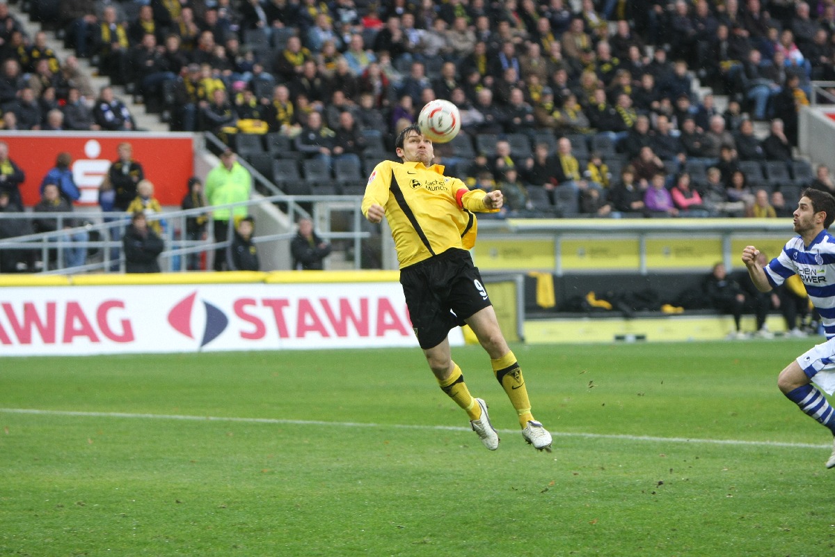 Aachen. Am 12. Spieltag der 2. Bundesliga kommt Alemannia Aachen gegen den MSV Duisburg nicht über ein 2:2 hinaus. Die Gastgeber fingen schwach an und überliesen den Zebras aus Diusburg die ersten 20 Spielminuten. Danach kam die Mannschaft von Trainer Peter Hyballa besser ins Spiel und erarbeitete sich einige gute Einschussmöglichkeiten. Doch bist zur Halbzeit blieb es torlos. Die Aachener kamen besser aus der Kabine und spielten nur so, wie es die Mehrheit der 19000 Besucher am Tivoli erwarteten. Marco Höger erlöste die Fans in der 64. Minute mit der Führung per Kopf. Drei minuten später ein umstrittener Foulelfmeter für Duisburg. David Hohs ist in der richtigen Ecke, kann den strammen Schuss von Sukalo aber nicht abwehren. Als eine Minute danach Duisburgs Soares mit „Rot“ vom Platz gestellt wurde, schien die Partie gelaufen. Aachen setzte alles auf eine Karte und lief in der 71. Spielminute in einen Konter, der den MSV durch Baljak in Führung brachte. Nun kochte der Tivoli. Die Mannschaft von Trainer Peter Hyballa baute immer mehr Druck auf und dieser wurde fünf Minuten vor dem Ende auch belohnt. Goalgetter Benny Auer nahm einen Kopfball von Höger im Strafraum auf und stand frei vor MSV-Keeper Yelldell und schob zum verdienten Remis ein.