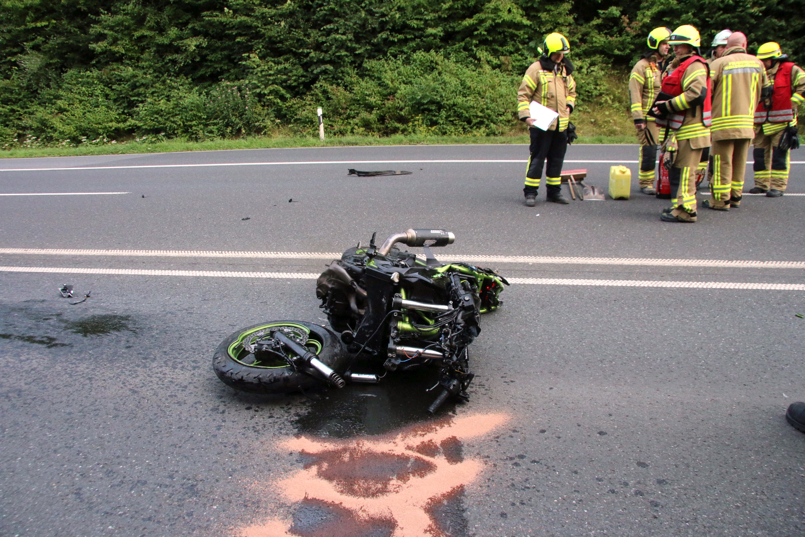 Nur noch ein Trümmerhaufen ist von dem Motorrad nach dem Unfall übrig geblieben.