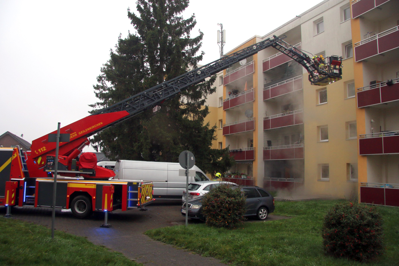 Geilenkirchen. Mit einem Großaufgebot rückten am Sonntagnachmittag Feuerwehren und Rettungskräften zu einem Häuserblock in der Goethestraße aus. Gegen 15.15 Uhr kam der Notruf, dass starker Rauch aus einem Kellerraum des Hauses gesehen wurde. Als die Feuerwehr am Einsatzort ankam, sahen sie schwarzen Rauch aus Kellerschacht steigen. Da sich in dem Haus rund 20 Wohnungen befinden war für die Einsatzkräfte schnelles Handel geboten. Mit Atemschutzgeräten verschafften sie sich zutritt zum Keller. Ein Leiterwagen kam ebenfalls zum Einsatz.