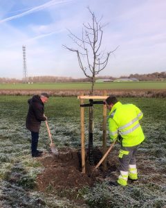 Für einen Spendenbetrag von 100 Euro konnten interessierte Bürgerinnen und Bürger Wildgehölze an der Martin-Heyden-Straße neben der Tennisanlage oder für einen Spendenbeitrag von 150 € Obstbäume und heimische Baumarten am Fahrposterweg pflanzen. Als Dankeschön für jede Spende gab es eine persönliche Spendenurkunde.