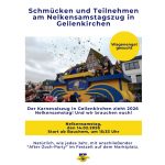 Geilenkirchen. Es ist bald soweit! Der Straßenkarneval beginnt. Am Nelkensamstag, 14.Februar, findet wieder der bunte Karnevalszug in Geilenkirchen statt. Start ist um 15.11 Uhr am Johann-Plum-Platz in Bauchem/Geilenkirchen und der Zug endet in Geilenkirchen am Marktplatz. Im Anschluss daran findet die beliebte After-Zoch-Party im Zelt auf dem Marktplatz bei freiem Eintritt statt. Anmeldungen für die Teilnahme am Zug können unter www.gkv-geilenkirchen.de oder julian@gkv-geilenkirchen.de erfolgen. Der veranstaltende GKV freut sich über jeden Wagen und jede Fussgruppe, die den Zug mit gestaltet und den Karnevalszug bunter machen. Freut euch auf viele strahlende Gesichter am Straßenrand. Alternativ kann man den bunten Zug vom Straßenrand genießen und den Straßenkarneval feiern. Auch in diesem Jahr werden sicherlich wieder viele geschmückte Häuser entlang des Zugwegs zu sehen sein.